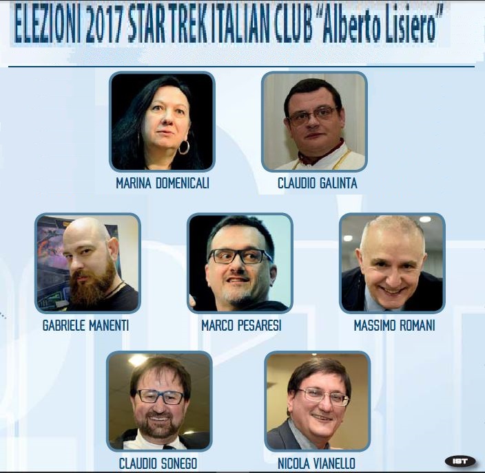 Venerdì 26 maggio si sono svolte a Chianciano Terme le elezioni del direttivo dello Star Trek Italian Club “Alberto Lisiero”. Ecco i 7 che si sono aggiudicati il compito di portare avanti il club per i prossimi tre anni.