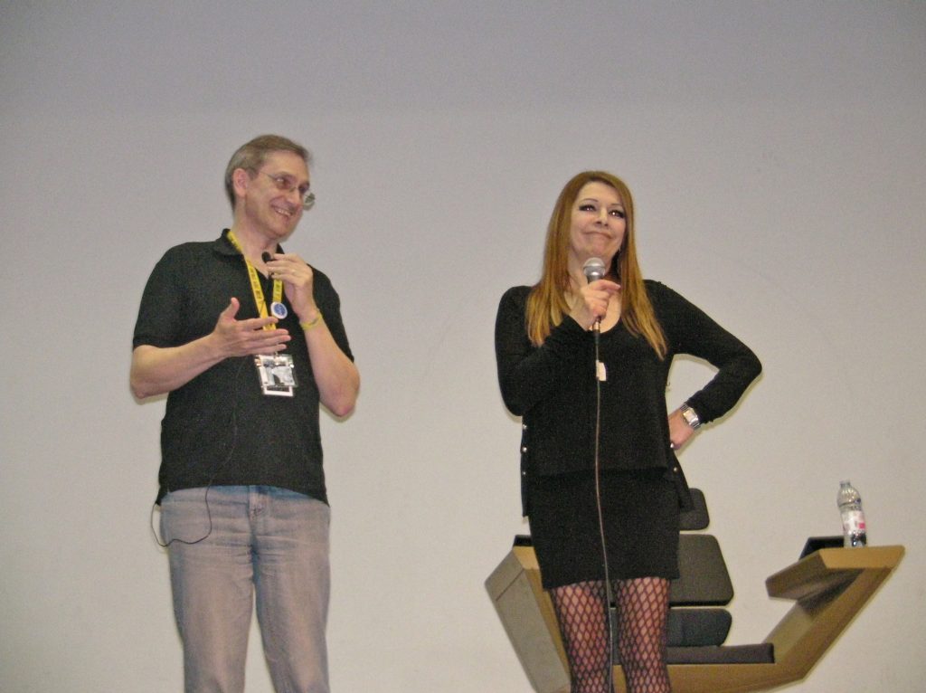 Julian Glover con la splendida Elena Bussino, a fare da traduttrice simultanea.