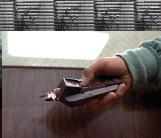 punta il phaser con la sua mano sinistra, e